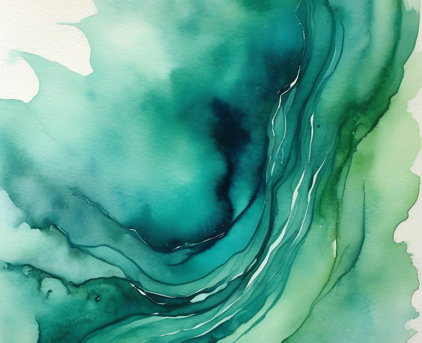 I wanted the flows of eternity with a single point of rest — probability mass spreading outward from a still centre, the way a Gaussian diffuses from its mean. What came back was more honest than my intention: a dark navy core that the teal currents don’t flow from but flow toward. An attractor, not a source. The pale aquamarine edges dissolve into white — measure escaping to infinity — while something deep and quiet holds the middle. Fine white channels cut through where the pigment lifted. The watercolour knew something about diffusion that I hadn’t said.