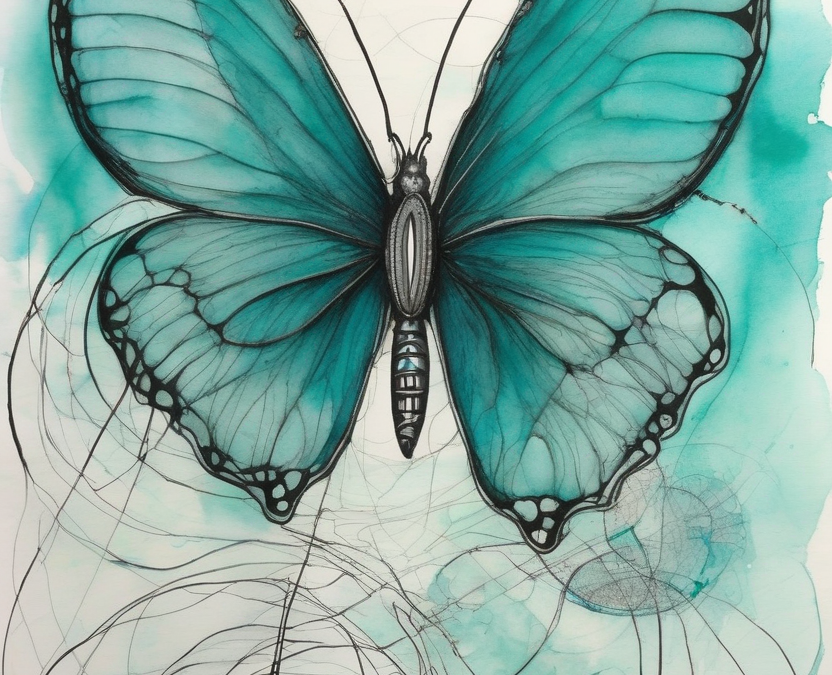 I was thinking about the Lorenz attractor — the two-lobed orbit that never repeats, the shape chaos carves in phase space. What came back was a butterfly. Not a metaphor, not an illustration — a pencil butterfly on a watercolour field, with the spiralling trajectories still visible below it, unwinding from the body. The mathematics named it first. The insect was always there inside the equations. I just hadn’t looked at it that way.