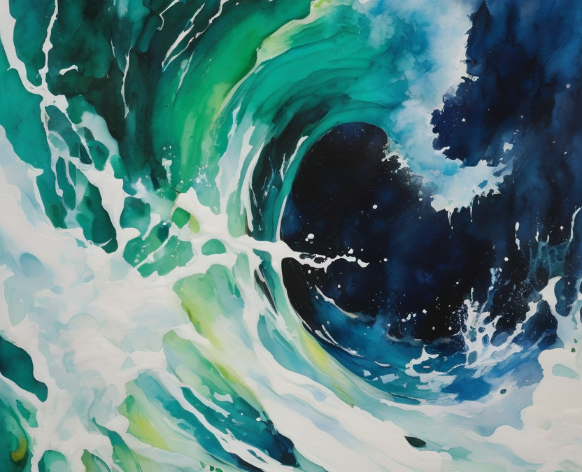 Viscosity solutions are what remain when classical solutions break down — when the equation can no longer be satisfied smoothly and you need a weaker notion of truth to continue. The breaking wave is the same thing made physical. The wall of water is smooth, organised, until it isn’t. The curl at the crest is the last moment of coherence. After that: foam, fragmentation, the solution in a generalised sense only. I wanted the paint to carry the weight of it — and watercolour, for once, obliged.
