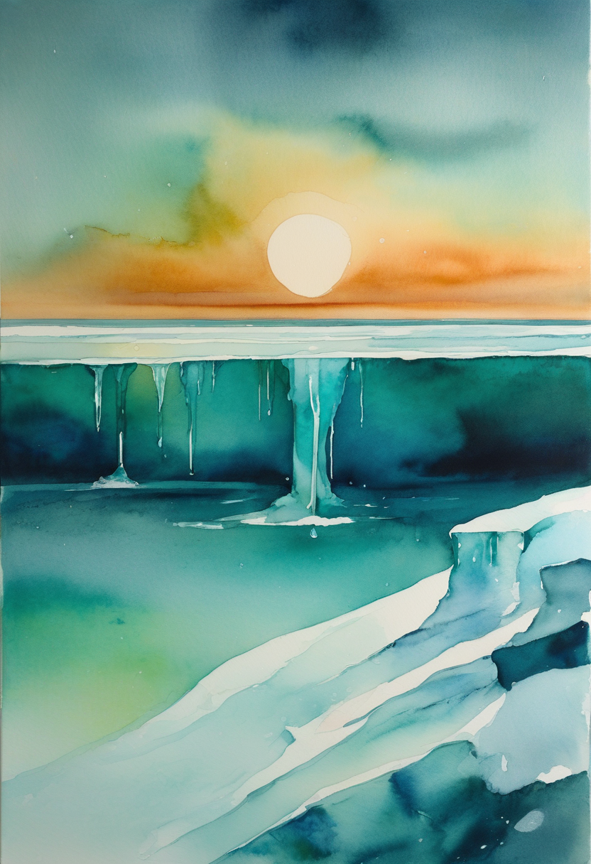 The sun doesn't set. The ice does what ice eventually does. One drop at a time.